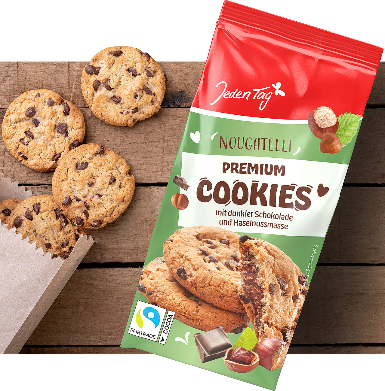 Jeden Tag wirkt modern und qualitativ – und das zu günstigen Preisen. Hierdurch spricht es eine breite Zielgruppe an und wirkt durch emotionale, visuelle Reize sehr angenehm. Die runde Form und die abgesetzte Artikelbezeichnung auf variablen Hintergründen sorgen für ein harmonisches, in sich stimmiges Design.